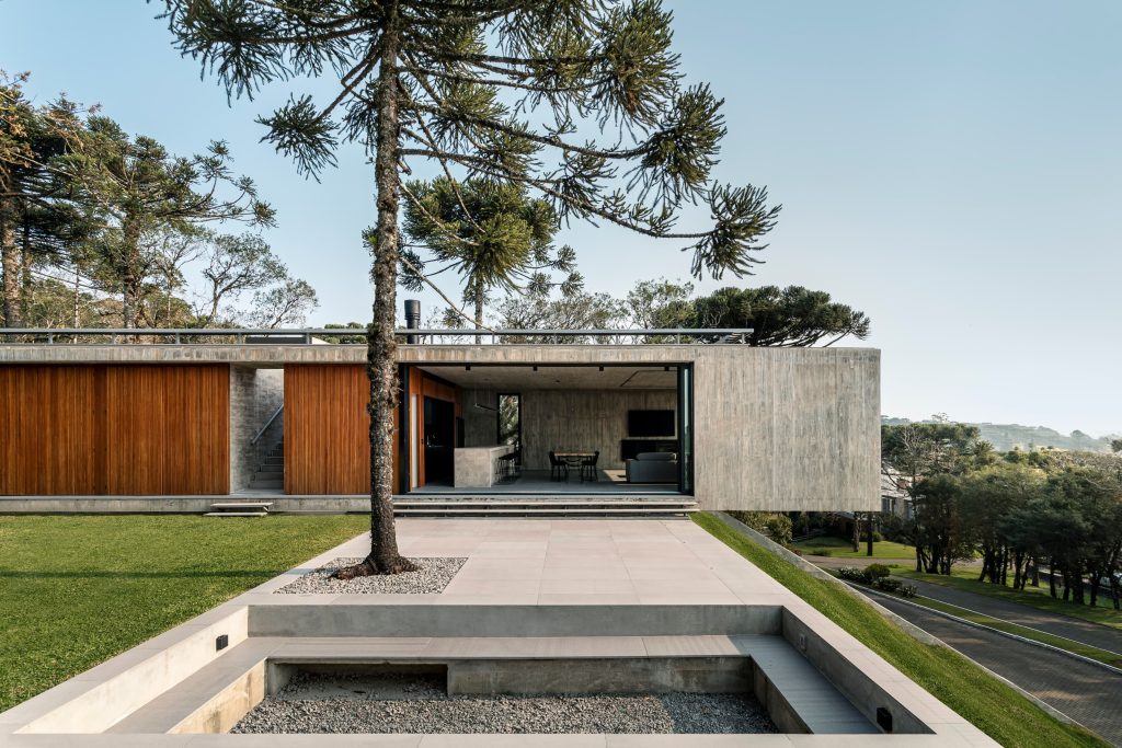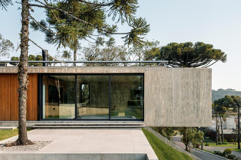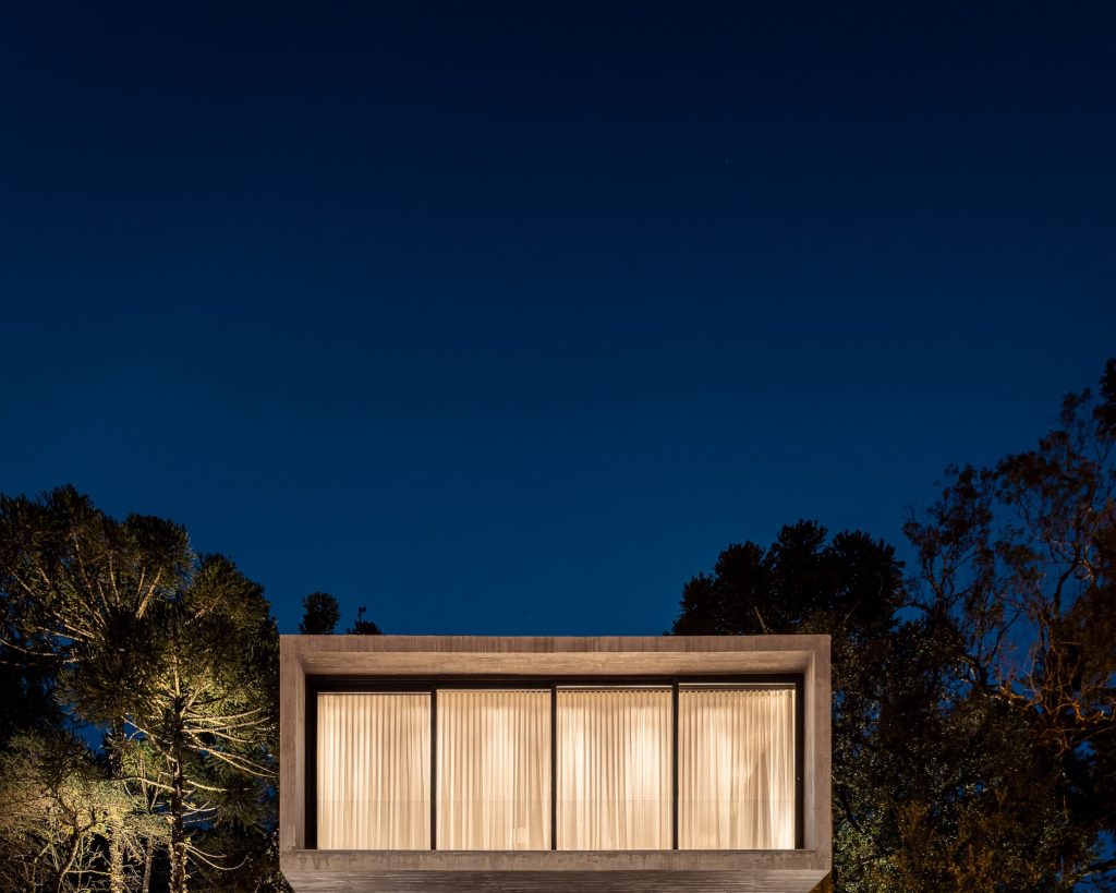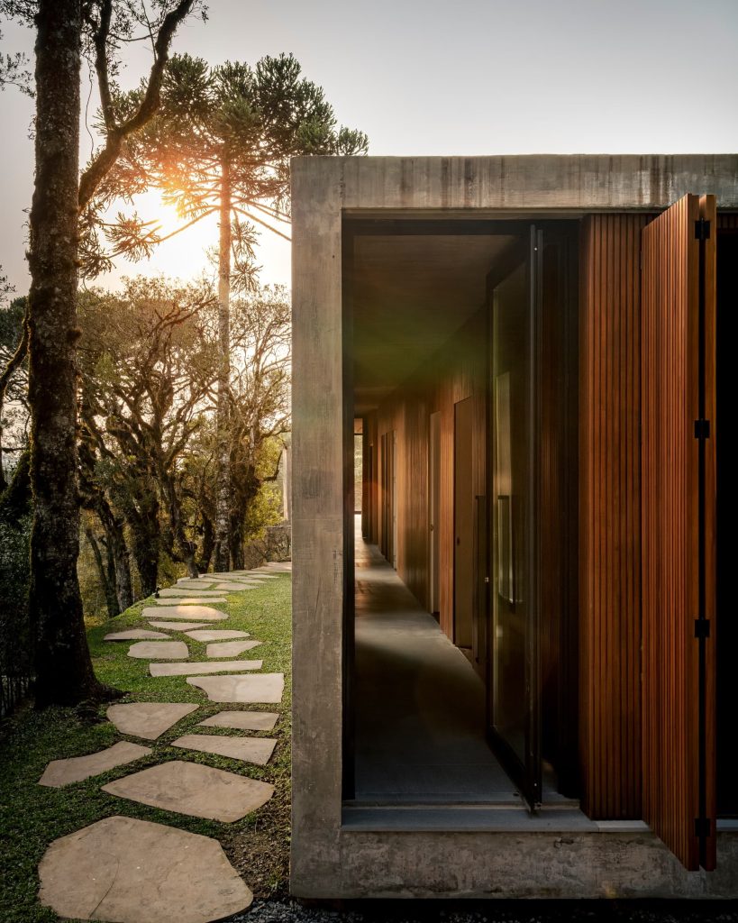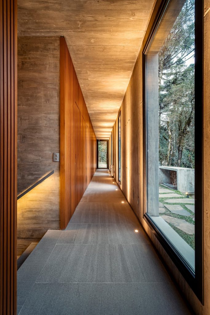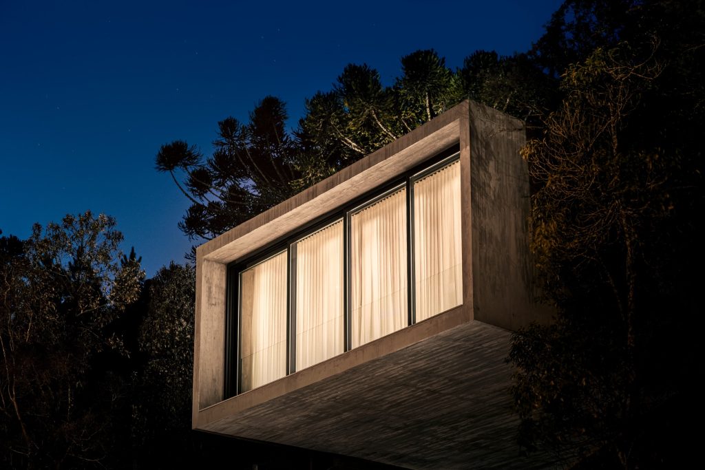 La materialidad del proyecto es intencionadamente elemental, con hormigón visto, cerramientos de vidrio, madera y suelos de piedra natural, que transmiten elegancia a través de la simplicidad. Casa Altos es una residencia para quienes desean abrazar lo mejor que la Serra Gaúcha tiene para ofrecer: tranquilidad y conexión con la naturaleza.