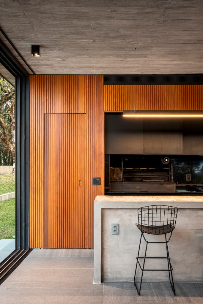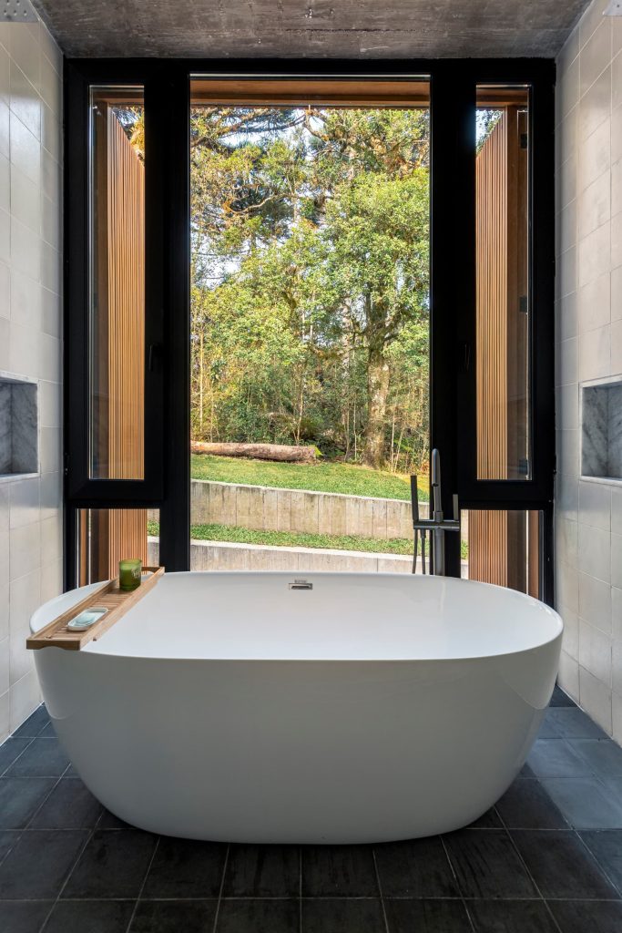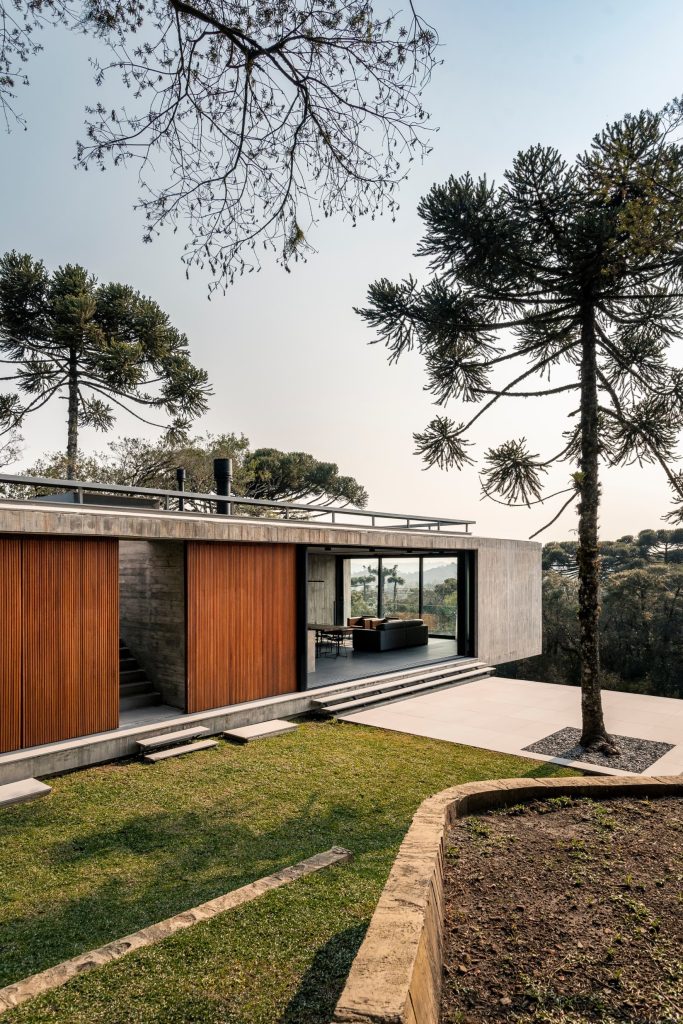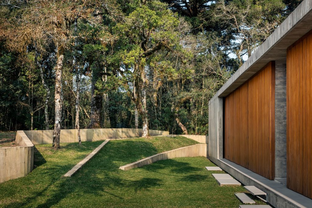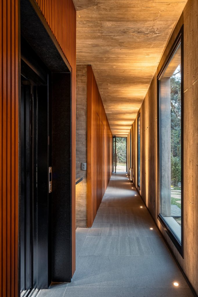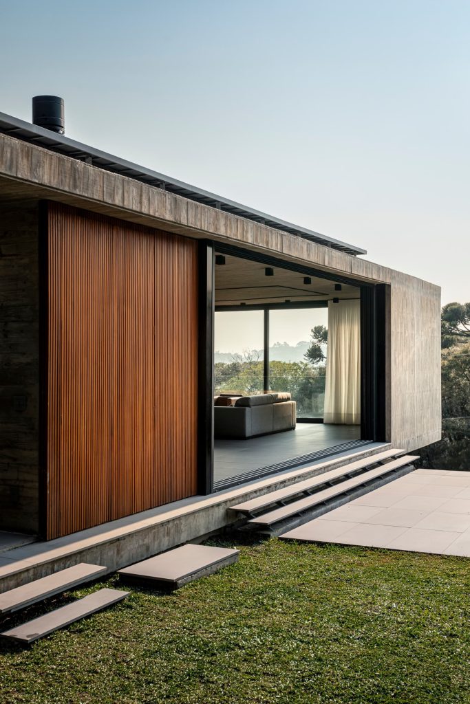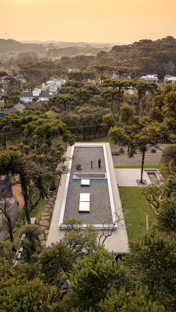 La materialidad del proyecto es intencionadamente elemental, con hormigón visto, cerramientos de vidrio, madera y suelos de piedra natural, que transmiten elegancia a través de la simplicidad. Casa Altos es una residencia para quienes desean abrazar lo mejor que la Serra Gaúcha tiene para ofrecer: tranquilidad y conexión con la naturaleza.