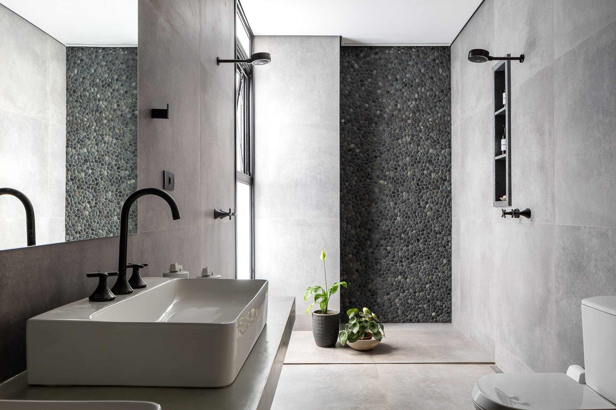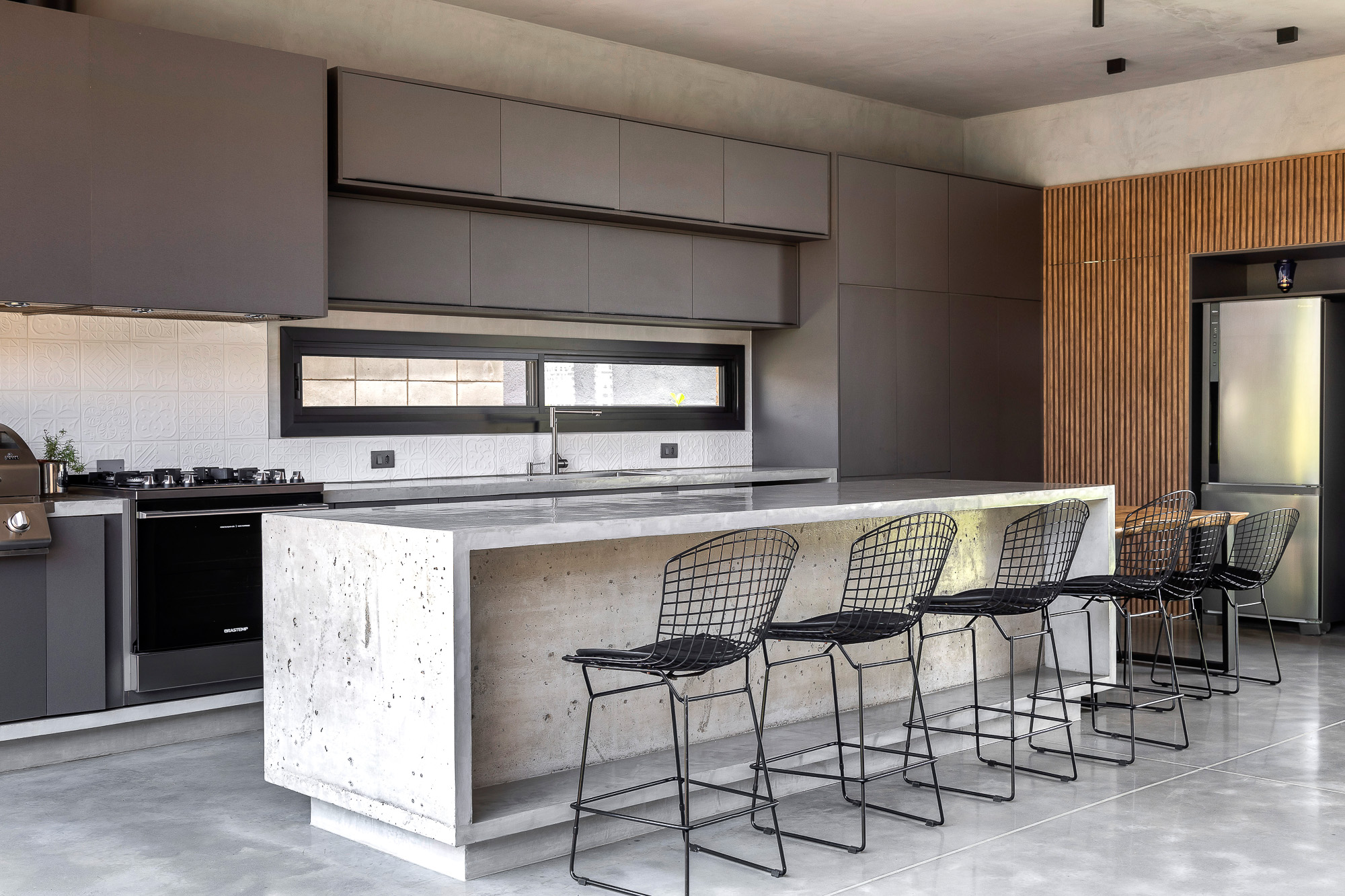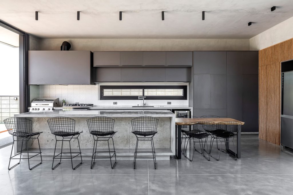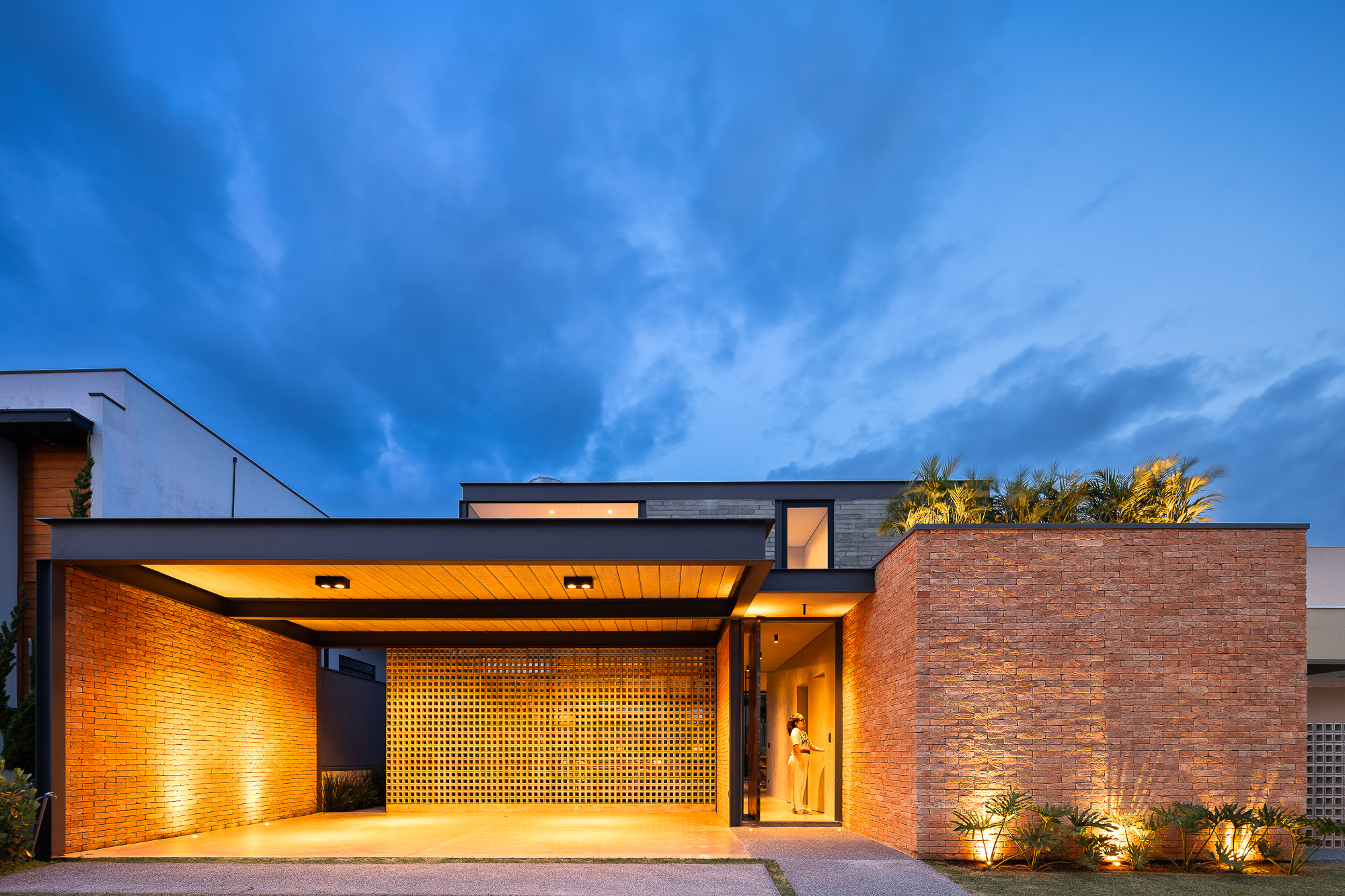 El área social consta de una luz de 7,00 x 10,00 metros, creando un espacio totalmente integrado, con paneles de vidrio en la parte delantera y trasera de este local. El jardín entre el garaje y el área social está cerrado por elementos huecos de concreto que controlan la luz solar desde el lado oeste y brindan privacidad, permitiendo que todo el panel de vidrio permanezca permanentemente abierto.