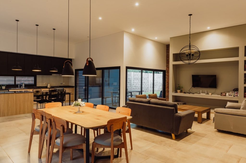 Todos los espacios de la casa ventilan e iluminan de manera natural, incluso el toilette que se encuentra dentro del área social, oculto a la vista desde el ingreso gracias a la presencia de un gran mueble de obra que contiene espacio para libros y el televisor del Estar.