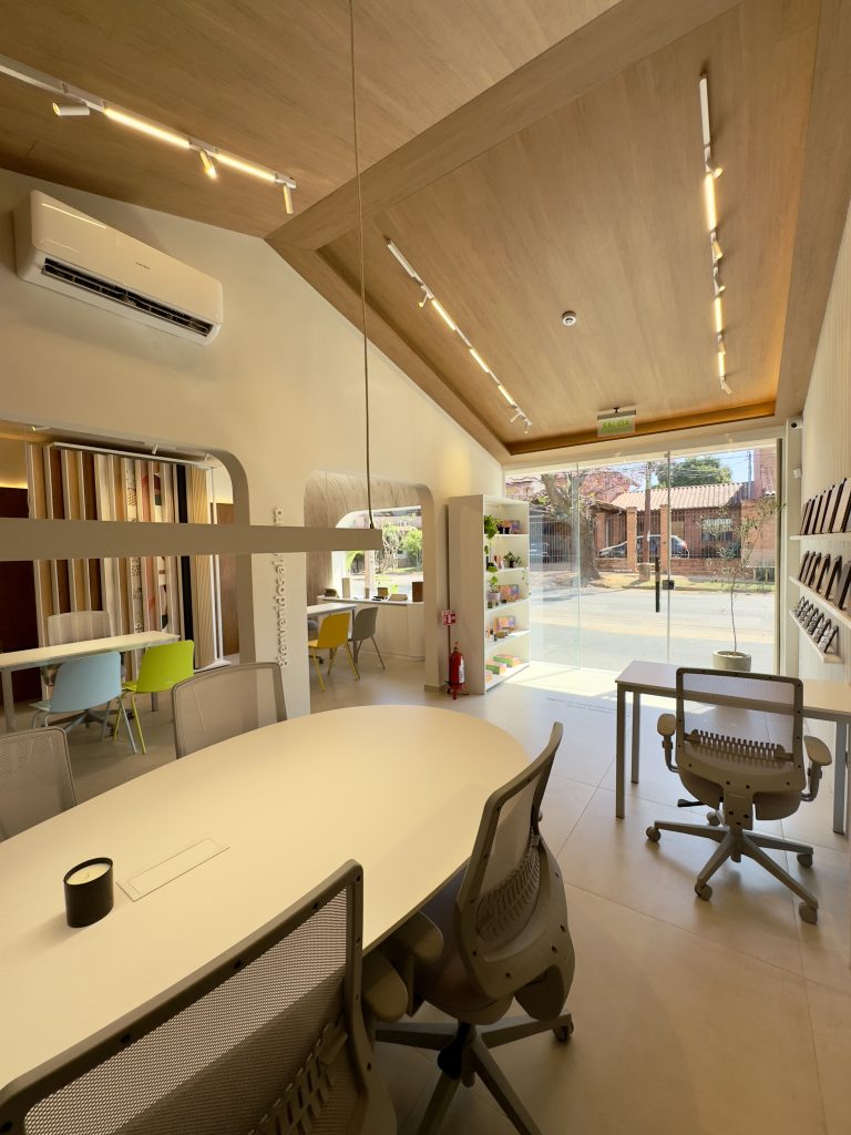 Como parte de esta visión, la marca cuenta en Paraguay con un Centro de Experiencia, concebido como una herramienta de apoyo al proceso proyectual. Un espacio donde arquitectos e interioristas pueden explorar el material en escala real, comprender su comportamiento en relación con la luz y la forma, y evaluar distintas posibilidades de aplicación más allá de la muestra tradicional. El Centro de Experiencia no funciona como un punto de exhibición, sino como un entorno pensado para experimentar, comparar y decidir con criterio.