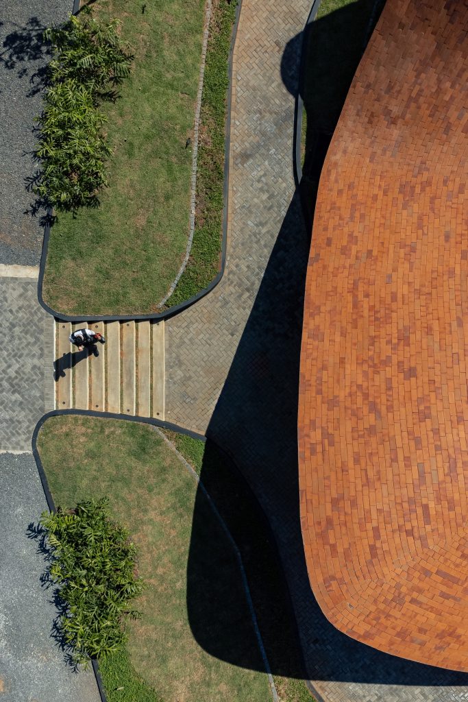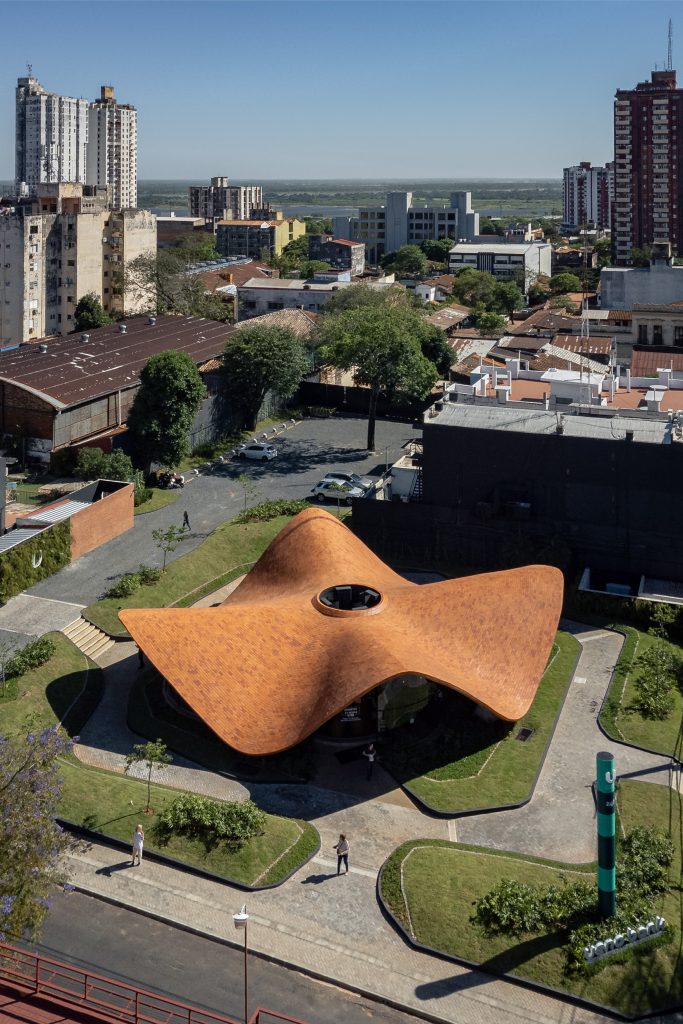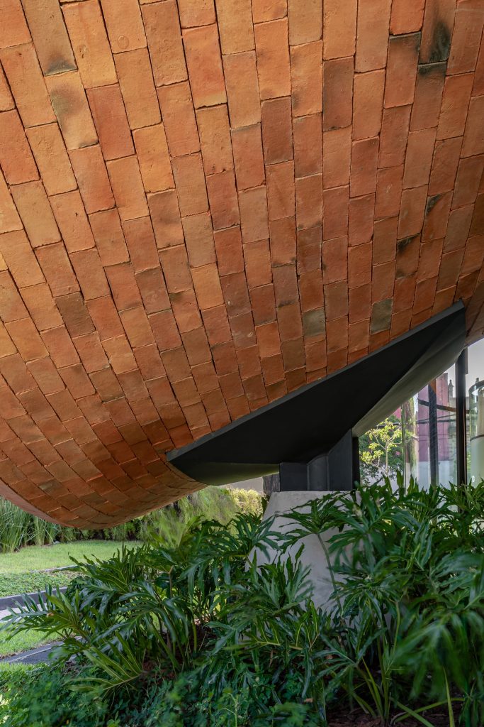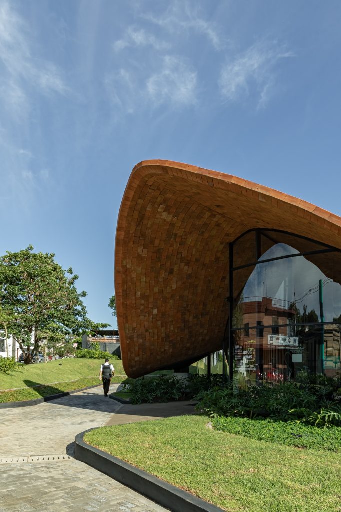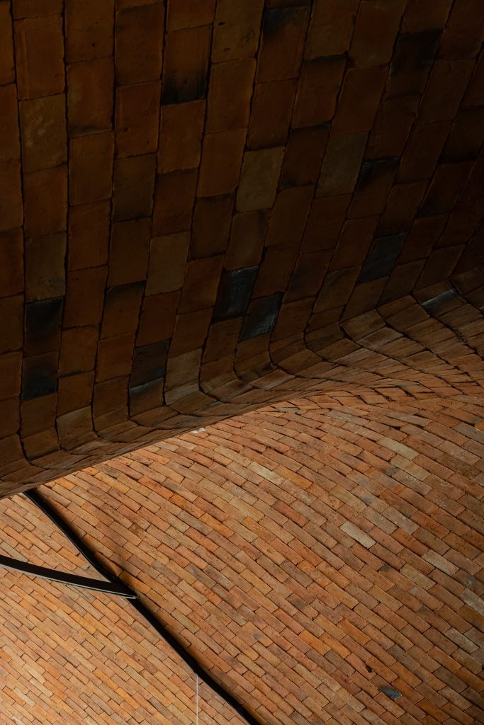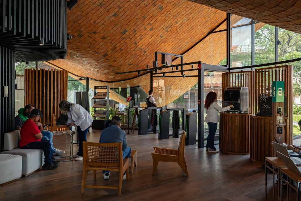 El techo de las nuevas sucursales, a las que llamamos “ameba”, es una estructura que parece flotar. Formado por miles de ladrillos, no busca ocultar su materialidad. Es honesto. Es lo que se ve: una geometría que no se impone, sino que emerge de una necesidad estructural y simbólica.