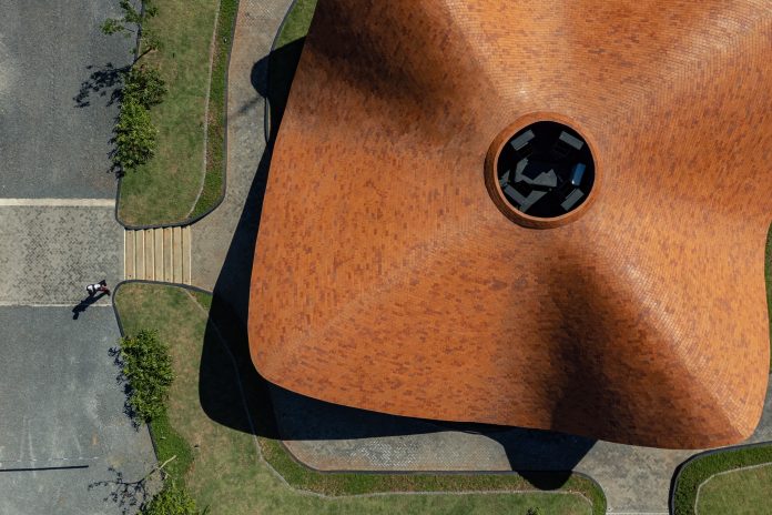 La ameba nace de esa idea: techos que flotan, hechos de miles de ladrillos que, juntos, levantan algo mucho mayor.