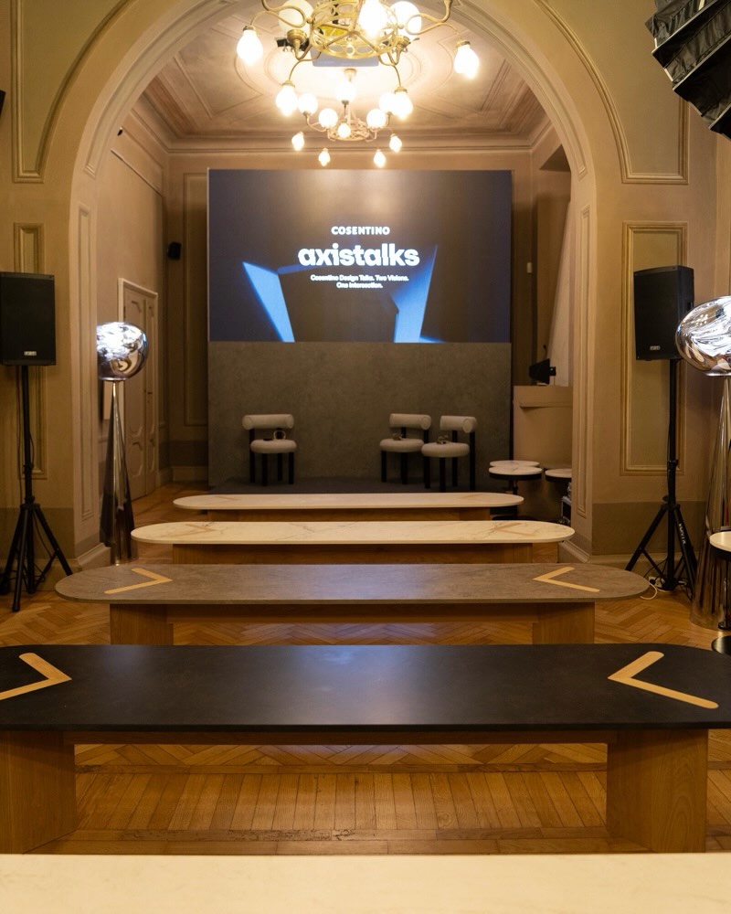 En Casa Manzoni, Cosentino presentó la instalación AXIS, desarrollada junto al diseñador británico Tom Dixon. La propuesta inmersiva exploró la relación entre materialidad, forma y percepción a través de cinco espacios conceptuales, configurando un recorrido sensorial en torno al diseño contemporáneo. Allí también se lanzó la nueva colección de mesas AXIS, en colaboración con Actiu, que trasladan la visión escultórica de Dixon a piezas funcionales.