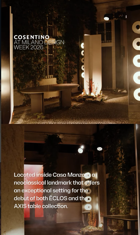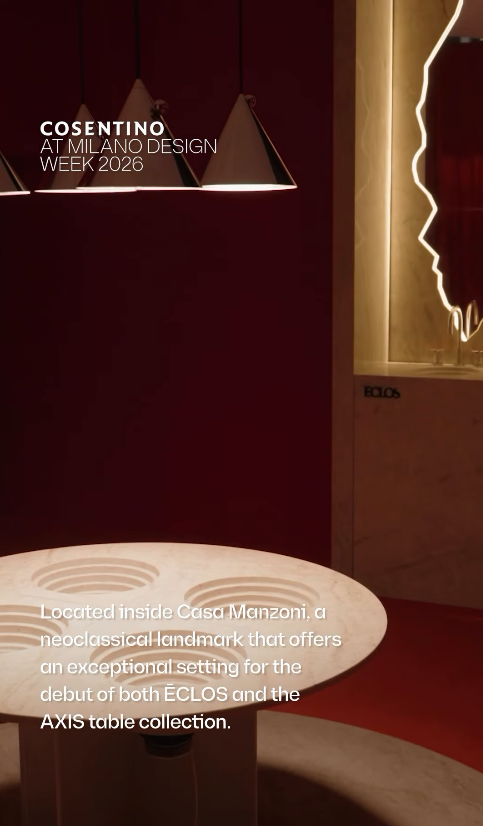 La nueva marca ECLOS® se convirtió en el conector temático principal de la presencia de Cosentino en la Semana del Diseño de Milán 2026, marcando un nuevo vector de crecimiento para la compañía. Su primera colección —con diseños como Tajnar, Wondr, Phantome o Legend— abre un horizonte de aplicaciones en arquitectura, mobiliario y soluciones decorativas, respondiendo a la demanda de materiales versátiles y con mayor carga estética.