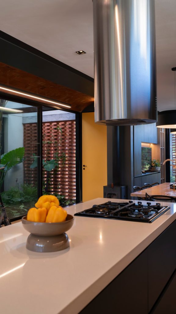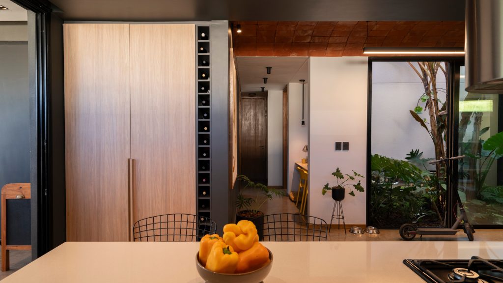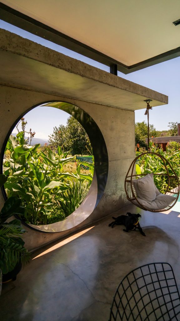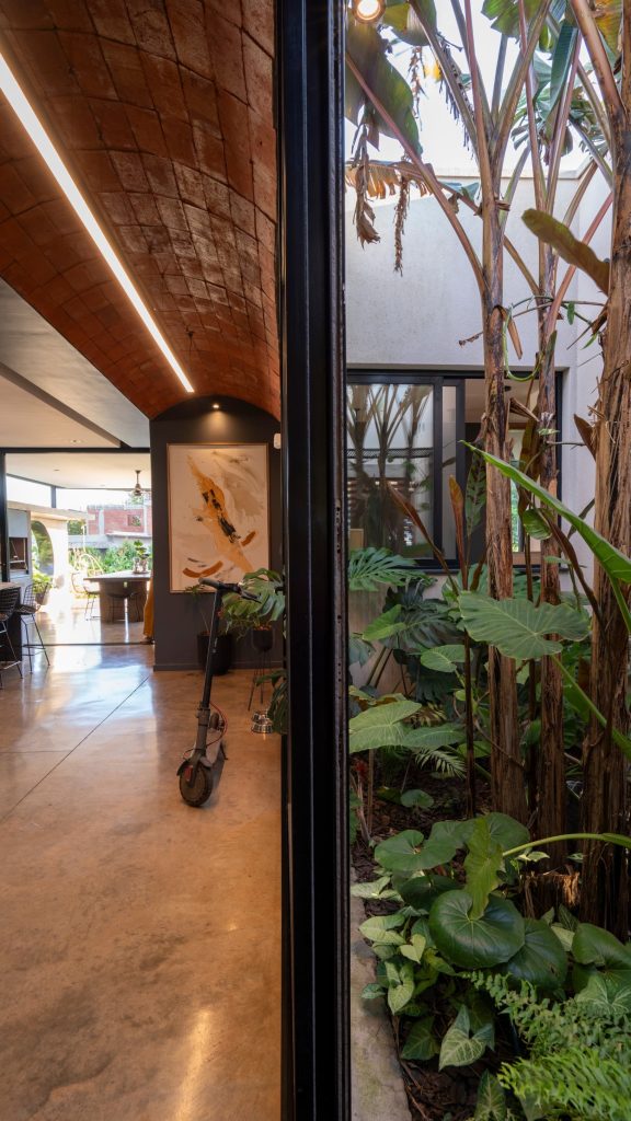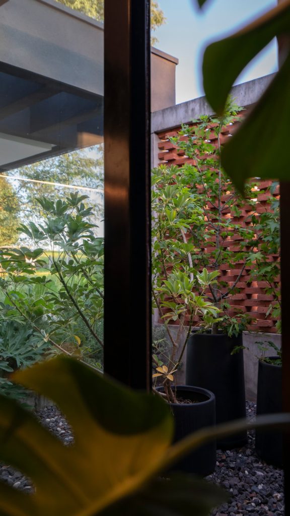 La vegetación tiene un rol activo: no adorna, sino que habita. Se cuela por muros, enmarca visuales y se integra a cada ambiente, difuminando los límites entre adentro y afuera. El verde es estructura, presencia y compañía.