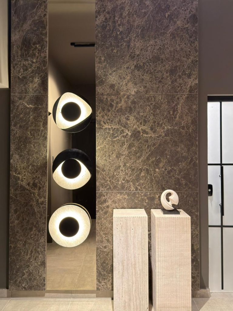 CM: “La selección de cada piedra es un proceso muy cuidadoso y casi curatorial. En MOVA LINE trabajamos tanto con piedras naturales como con superficies sinterizadas de alta tecnología, y en ambos casos buscamos un equilibrio entre estética, carácter y resistencia.