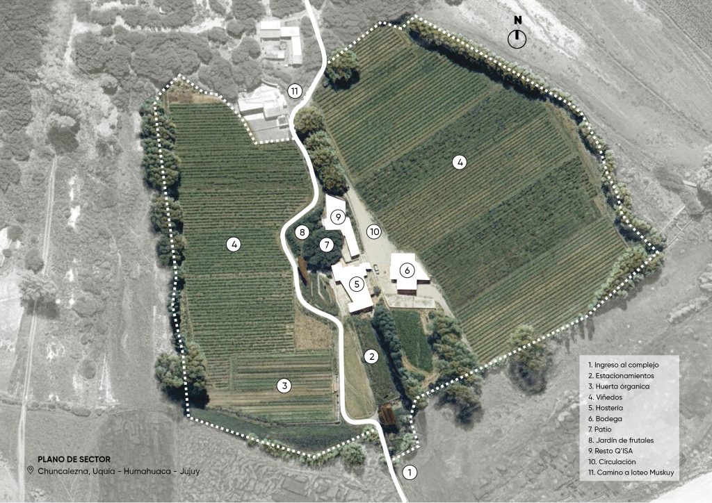 Memoria enviada por el estudio de arquitectura. El restaurante Q’isa se encuentra situado en la localidad de Chucalezna, dentro de la Quebrada de Humahuaca, un área de relevancia cultural y paisajística en el norte argentino. La propuesta arquitectónica responde a una integración contextual con el entorno natural y cultural, combinando técnicas constructivas locales con soluciones contemporáneas.